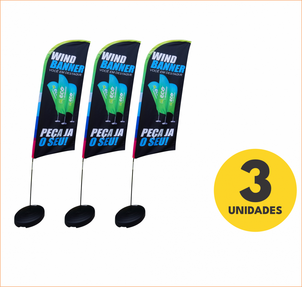 KIT 3 UNIDADES WIND BANNER 350CM DE ALTURA